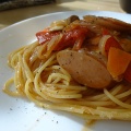 タマネギ、パプリカ、ニンジンとケチャップとバターでナポリタン。